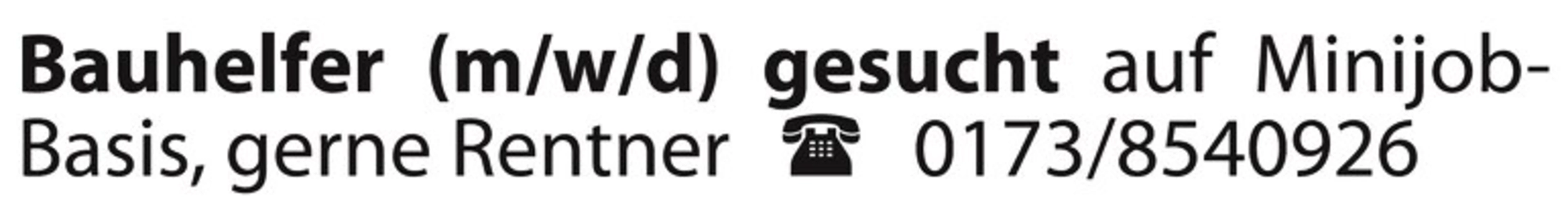 Bauhelfer(m/w/d)gesucht auf Minijob-Basis, gerne Rentner ? 0173/8540926
