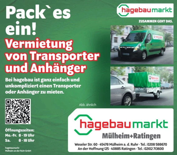 Öffnungszeiten: Mo.-Fr. 8 - 19 Uhr Sa. 8 - 18 Uhr hagebaumarkt Mülheim an der Ruhr GmbH